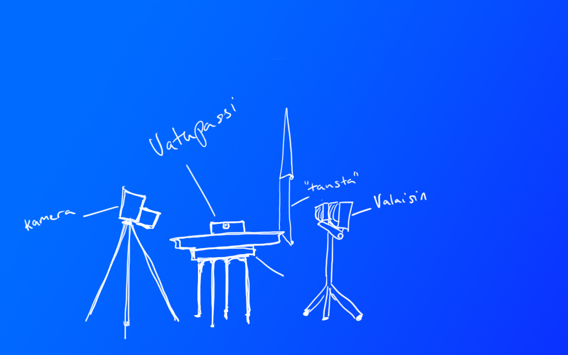 - Mikäli haluat lisää väriä kuvaan, niin voit teipata värikalvoja mielesi mukaan "kuvaustaustaan".